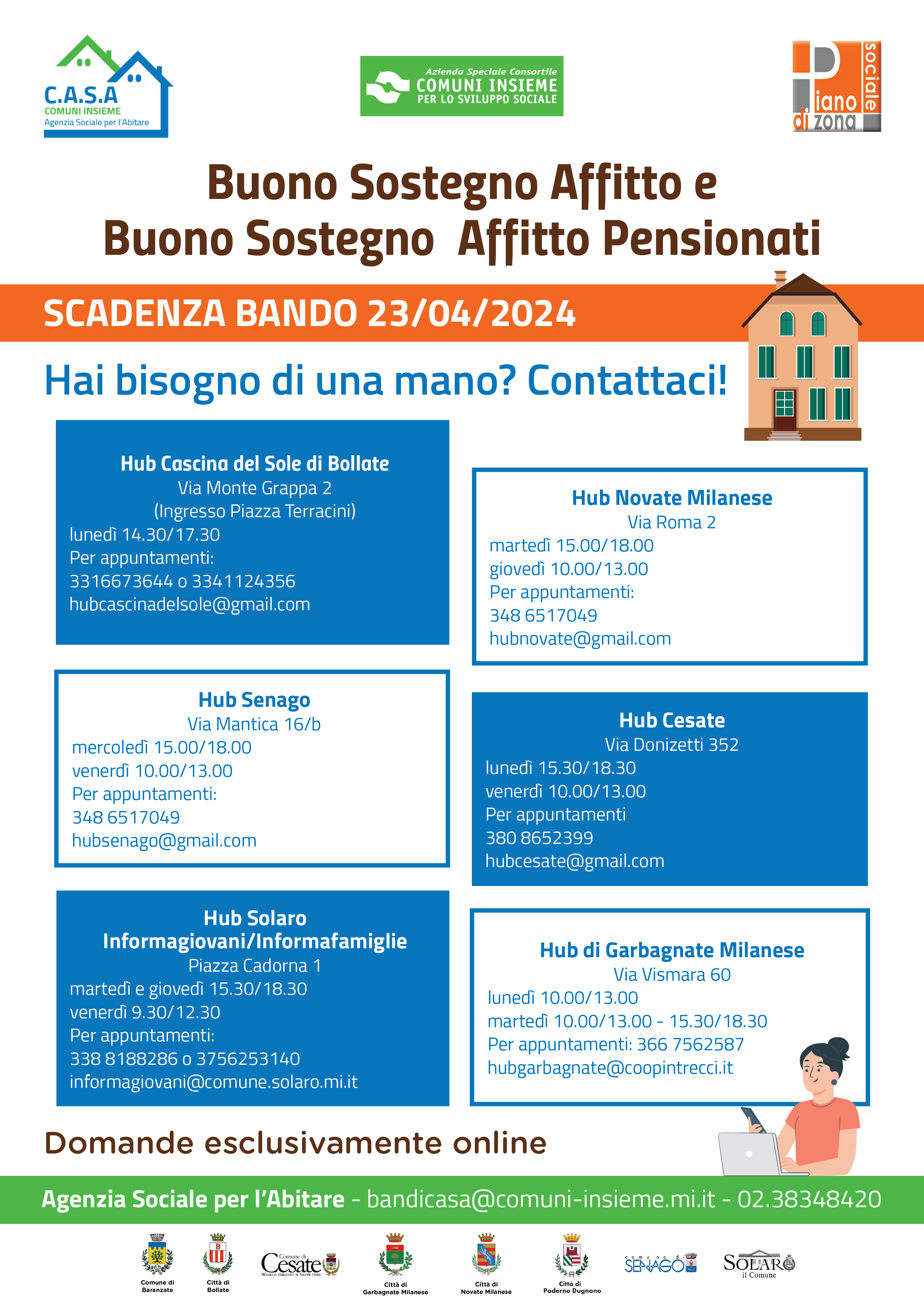 ASC Comuni Insieme rende nota l’apertura degli avvisi per il sostegno al pagamento dell’affitto degli inquilini che versano in condizioni di disagio economico o in condizione di particolare vulnerabilità.